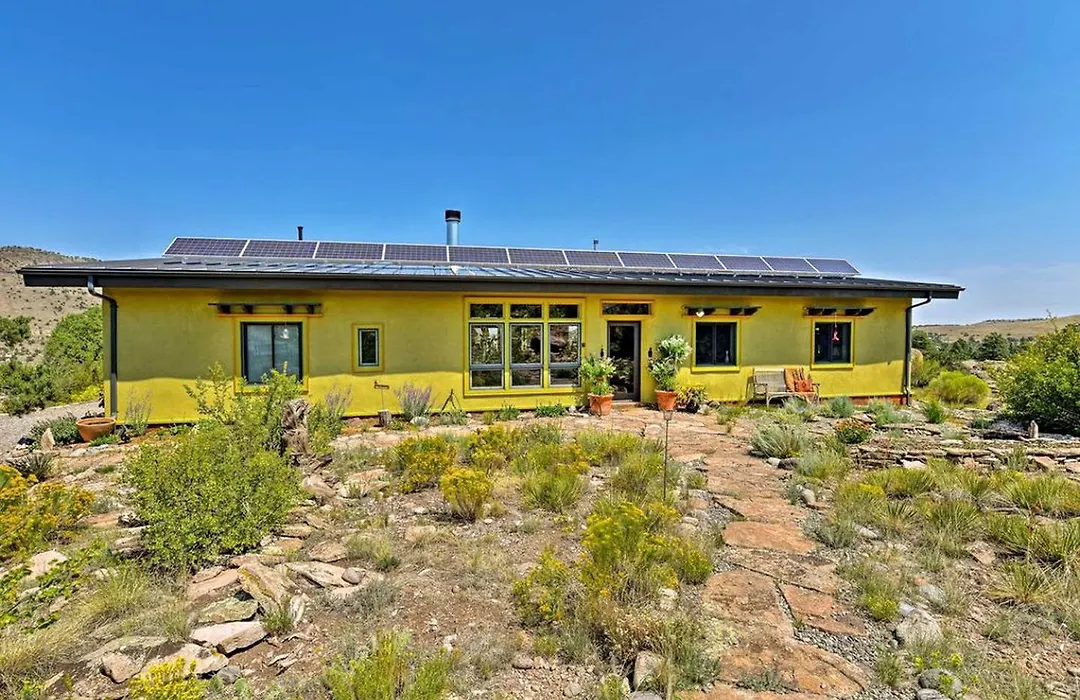 This property includes an equipped kitchen with a dishwasher. Solar-Powered Rocky Mountain Retreat For An Off-Grid Vacation In Colorado Villa features a patio as well as a hot spring public bath. A range of activities, such as canoeing, snow skiing, and cycling, is arranged on site.